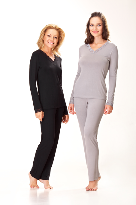 состоящий из блузы полуприлегающего силуэта с V-образным вырезом и узких брюк