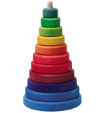 Треугольные призмы радужных цветов, нанизанные на стержень, составляют яркую и интересную пирамидку. Части пирамидки можно использоватьи как счетный материал, и как строительные кубики.