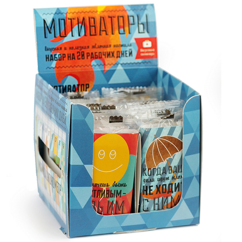 В коробке вы найдете не только натуральную, вкусную и полезную яблочную пастилу, но и 20 побуждающих к действию цитат, которые будут мотивировать вас на новые свершения. А поставив "Мотиваторы" на свой рабочий стол, вы помогаете своим коллегам и друзьям вдохновиться.