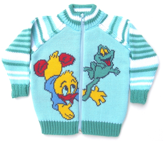 Жакет с жаккардовым рисунком на полочке, полосатыми рукавами и спинкой.