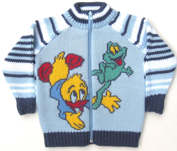 Жакет с жаккардовым рисунком на полочке, полосатыми рукавами и спинкой.