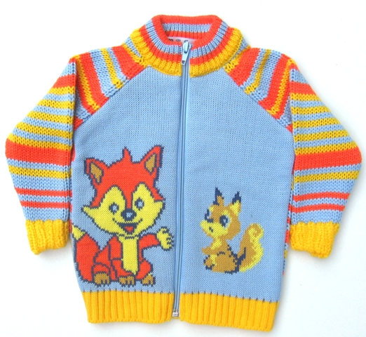 Жакет с жаккардовым рисунком на полочке, полосатыми рукавами и спинкой.