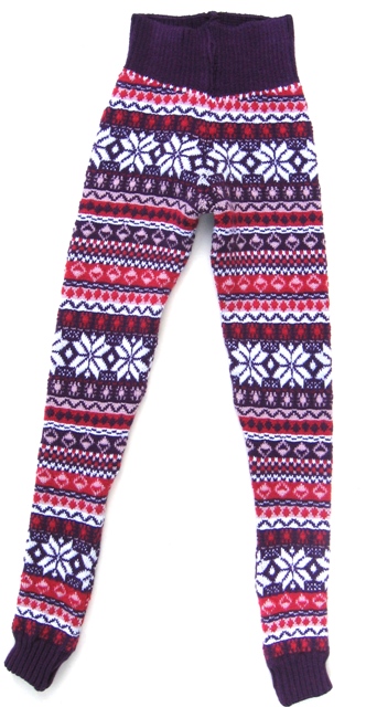 Лосины жаккардовые, связанные по лекалам без кроя, с использованием лайкры, пояс провязан спандексом.