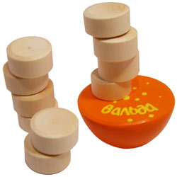 Веселая игра для развития глазомера, ловкости и чувства равновесия ребенка. Может применяться для изучения цифр. Игрушка состоит из 1 цветного снования - полушария и 10 неокрашенных деревянных шайбочек. Правила игры: Каждый игрок по очереди берет цветное основание и начинает возводить на нем башню из шайб, ставя их друг на друга плашмя. Побеждает игрок, который сможет построить самую высокую башню, удержав ее в равновесии. Для детей от 4 до 14 лет Развивает мелкую моторику рук, навыки игрового общения
