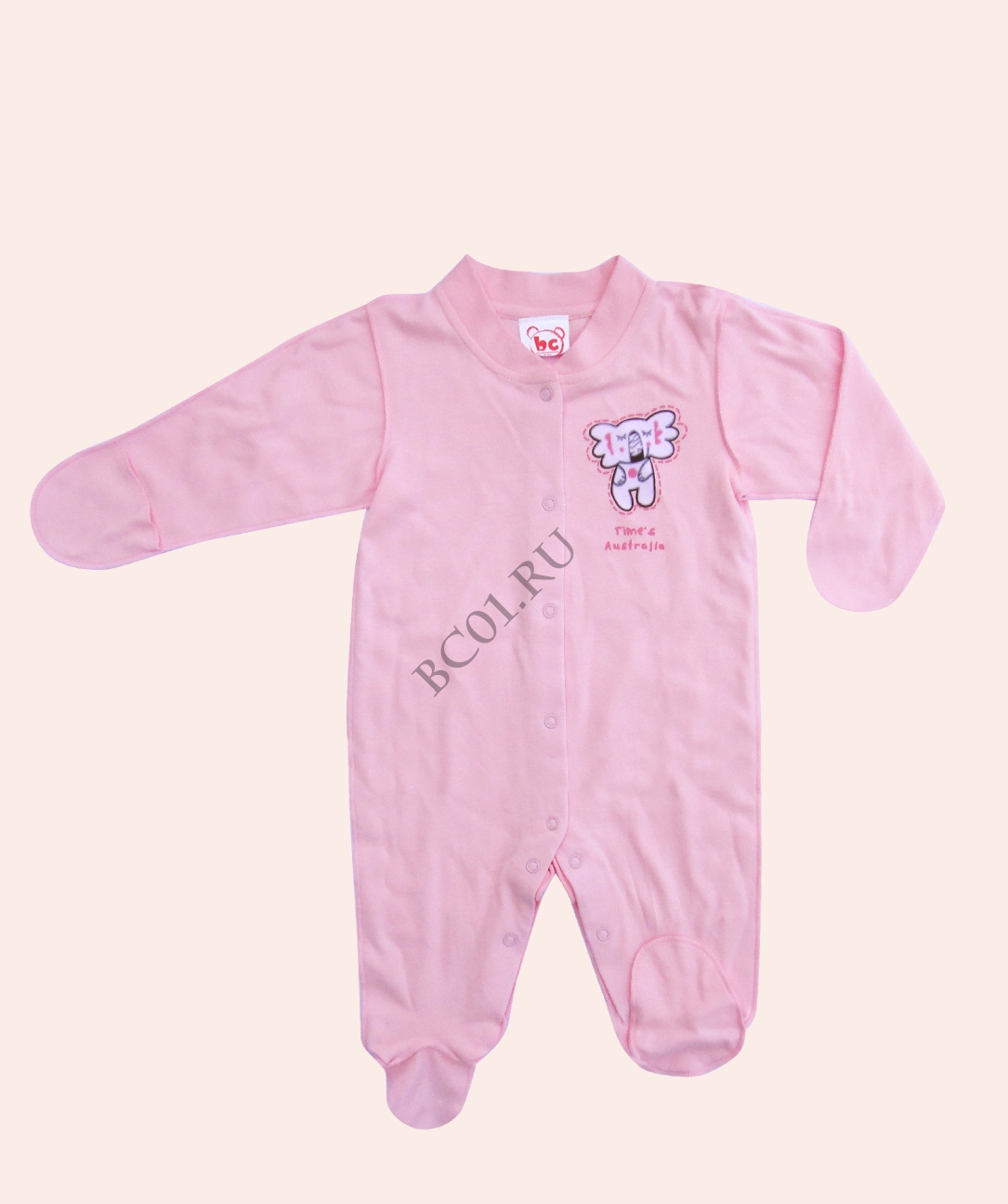 Тонкий трикотажный комбинезон нежно-розового цвета. Застежка на кнопочках обеспечивает удобство одевания малыша.