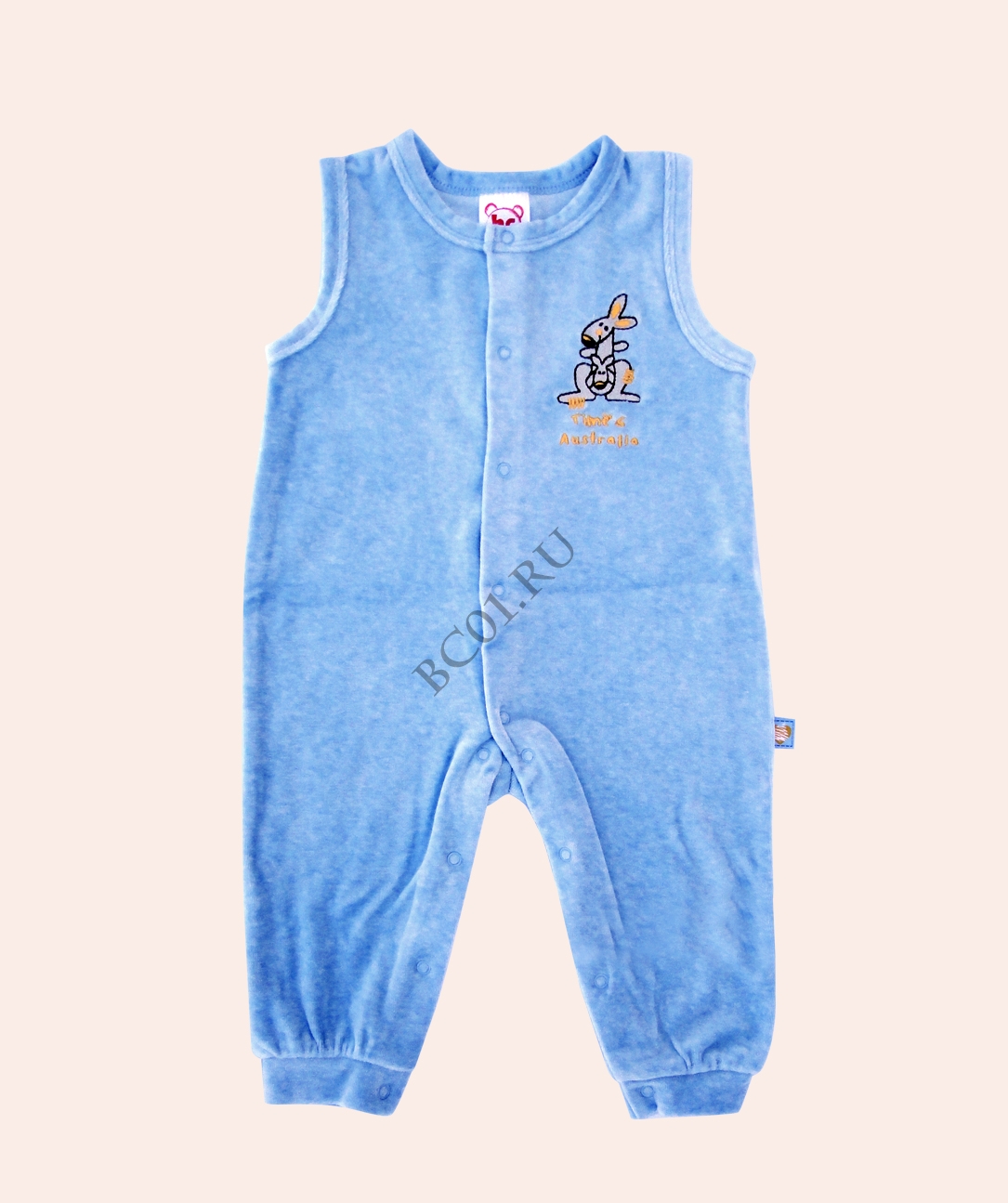 Ползунки из нежного, приятного на ощупь велюра на бретелях. Цвет- голубой.