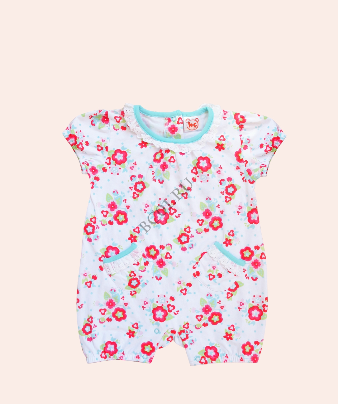 Яркий песочник для девочки от 3 месяцев до 1,5 лет. Мягкий, безопасный хлопок; окантованный круглый вырез; застежка на кнопки