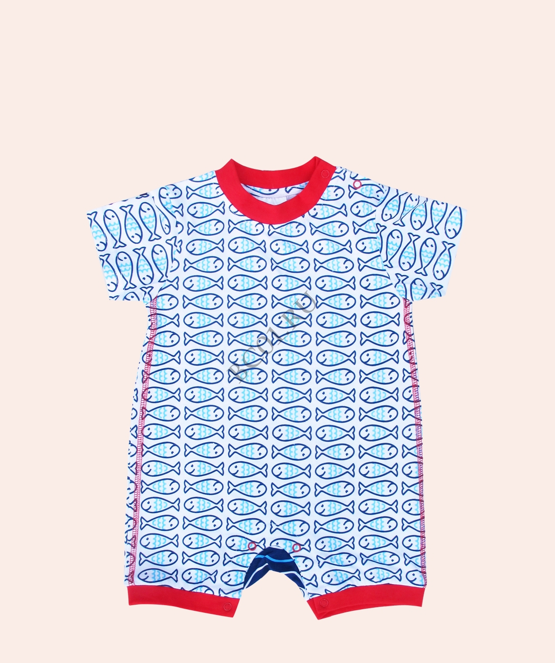 Яркий летний песочник от 3 мес. до 1,5 лет. Мягкий, безопасный хлопок; окантованный круглый вырез; застежка на кнопки на плече и по шаговому шву. Металлические кнопки не содержат никеля, окрашены в тон трикотажного изделия и после стирок не ржавеют.