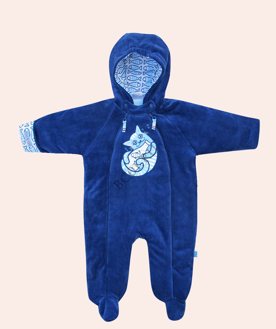 Комбинезон из мягкого, приятного на ощупь велюра. Ручки закрываются с помощью манжетов.