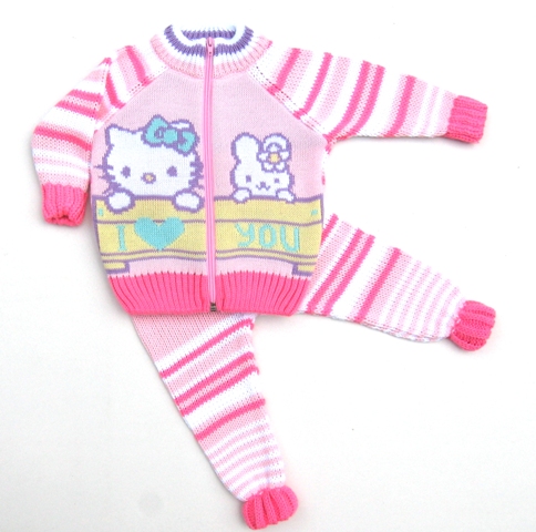 Костюм с жаккардовым рисунком на полочке, полосатыми рукавами и спинкой. Штанишки вывязаны по контуру, пояс провязан спандексом.