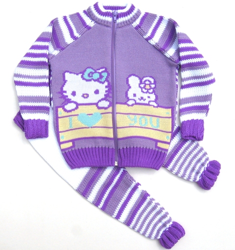 Костюм с жаккардовым рисунком на полочке, полосатыми рукавами и спинкой. Штанишки вывязаны по контуру, пояс провязан спандексом.