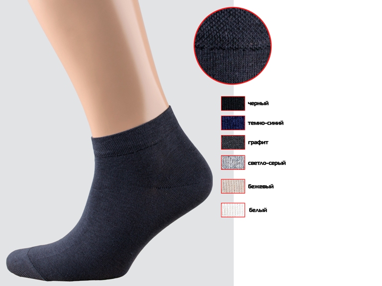 Укороченные однотонные мужские носки линии Active из гребенного длинноволокнистого хлопка с добавлением полиамида и эластана для эластичности и комфортной посадки. Ориентированное плетение обеспечивает повышенную прочность. Модель выполнена в шести расцветках - черной, тёмно-синей, белой, бежевой, светло-серой и графитовой. Такие носки идеально подходят для занятий спортом, а также для повседневного ношения под кроссовки или кеды. Мягкая двойная анатомическая резинка не сдавливает голень и сохраняет в норме циркуляцию крови в ногах, а усиленные двойной нитью пятка и мысок обеспечат долгую службу изделия.
